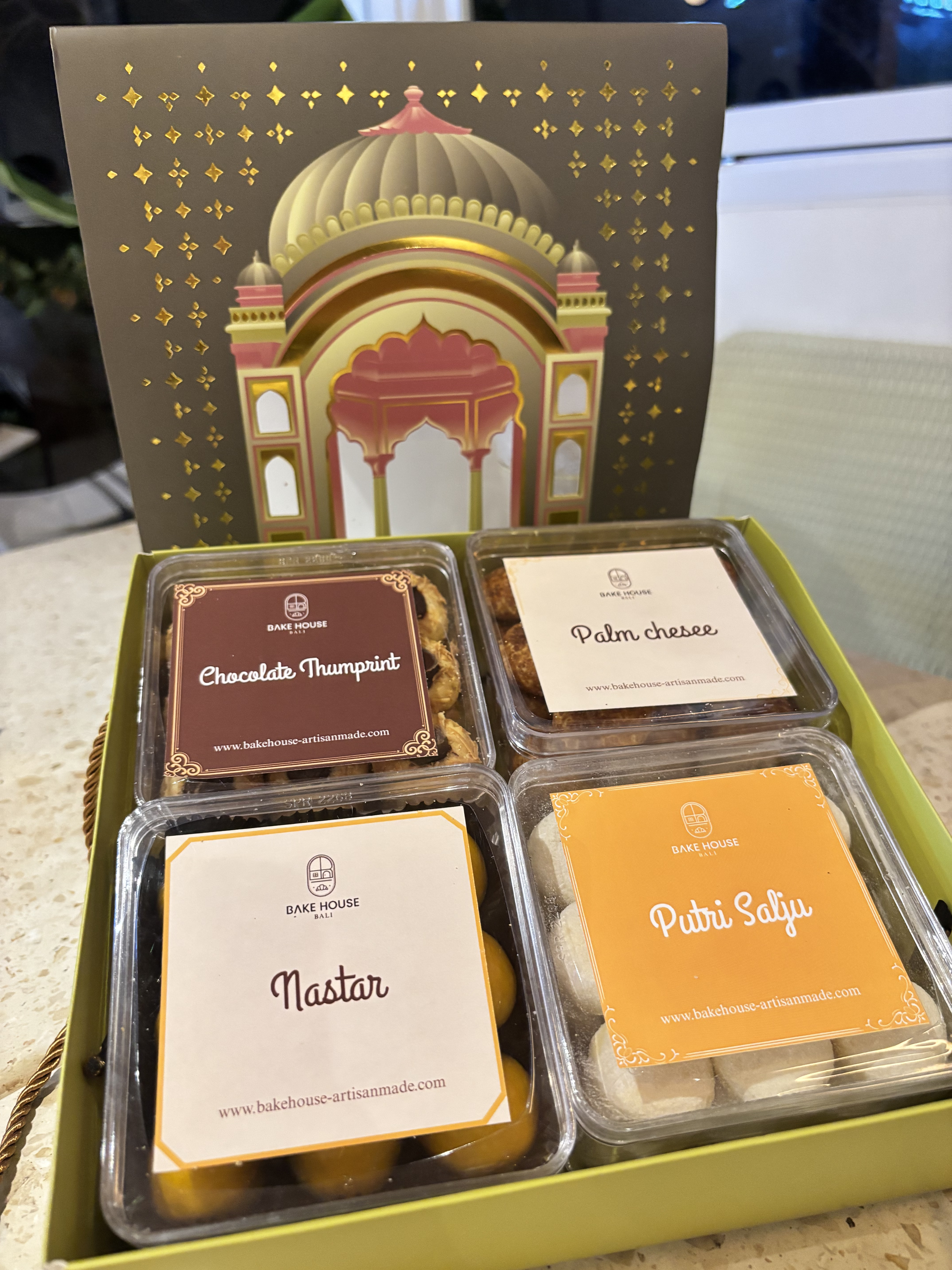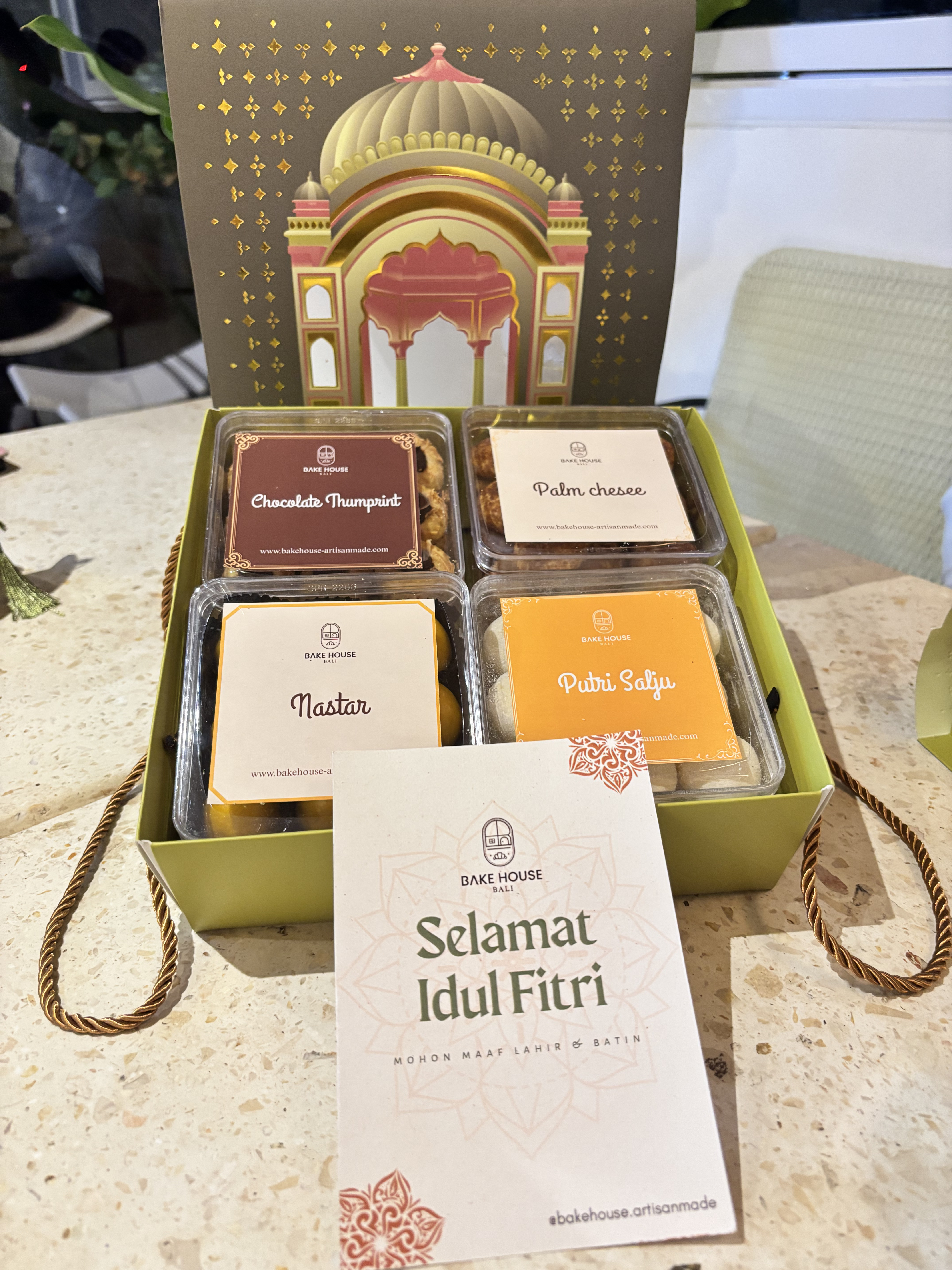 Hampers Idul Fitri dengan tampilan lebih mewah dan isi lebih lengkap. Berisi 4 varian cookies premium dalam box eksklusif bertema Raya. Cocok untuk keluarga, kerabat, maupun corporate gift.